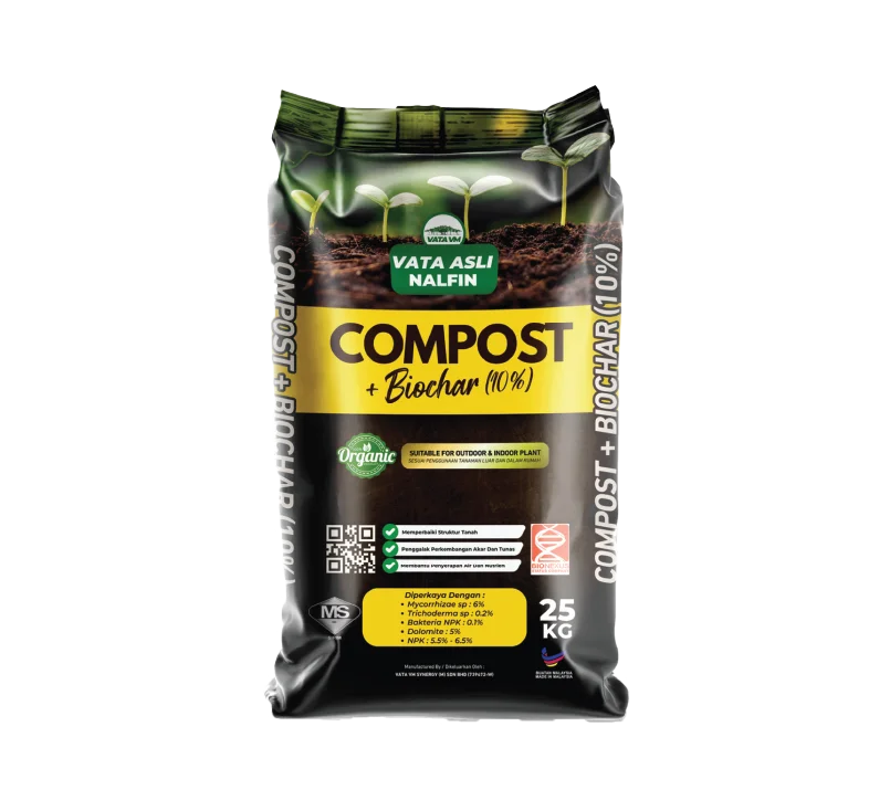 Penyubur tanah organik yang ringan dihasilkan daripada sisa kelapa sawit, sesuai untuk memperbaiki struktur tanah dan aktiviti mikrob. Kelebihan: • Meningkatkan pH tanah, struktur, dan pengekalan air sambil mengurangkan hakisan • Mengekalkan nutrien dengan lebih baik menggunakan biochar berpori untuk pelepasan nutrien secara perlahan • Menambah karbon stabil dan membantu menyerap logam berat untuk kesihatan tanah jangka panjang